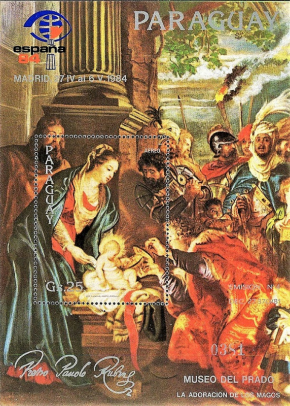 «Пакланеньне мудрацоў» на блёку Парагваю з выявай карціны Рубенса (1984 г.)