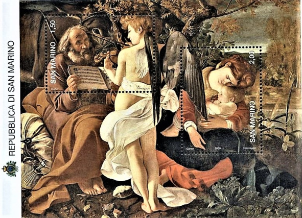 Рэпрадукцыю карціны Караваджа «Адпачынак на шляху ў Егіпет» на блёку выпусьціла ў 2009 г. пошта Сан Марына