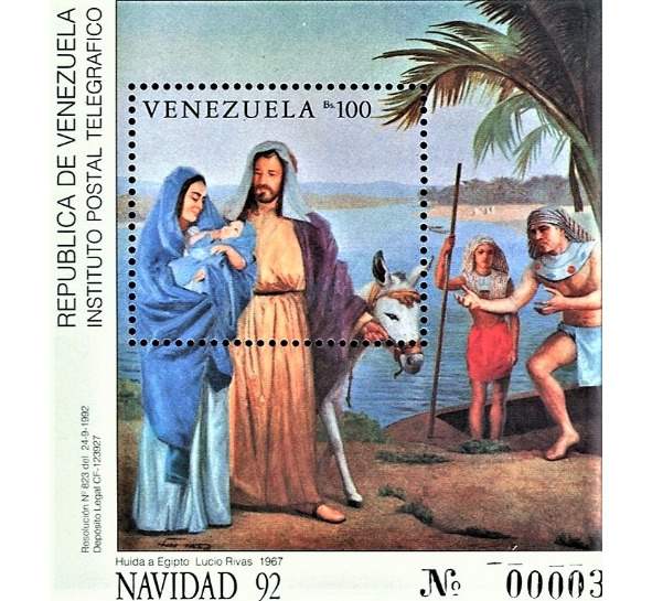У 1992 г. пошта Венэсуэлы выпусьціла блёк з рэпрадукцыяй карціны Луціа Рываса. Сьвятая сям’я прыйшла ў Егіпет. І адзін з мясцовых жыхароў адчуывае незвычайнасьць прышэльцаў і радасна вітае іх
