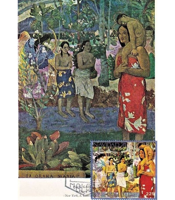 Пошта Гвінэі Экватарыяльнай у 1974 годзе выпусьціла марку і картмаксімум з рэпрадукцыяй карціны Поля Гагена «Ia Orana Maria» (у перакладзе з таіцянскага — «Мы молімся табе, Марыя»; яшчэ адна назва «Авэ, Марыя»), напісанай ім у 1891 г. пасьля свайго першага прыбыцьця на Таіці