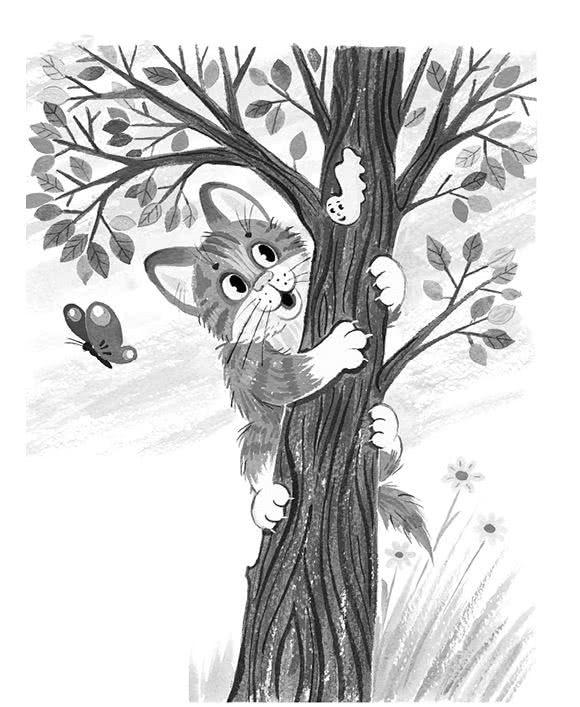 Котёнок прибежал в сад пораньше. Он не умел лазать по деревьям и очень хотел научиться. Внезапно Мурзик услышал рассерженный голосок и увидел крошечный шарик, похожий на улитку без домика.