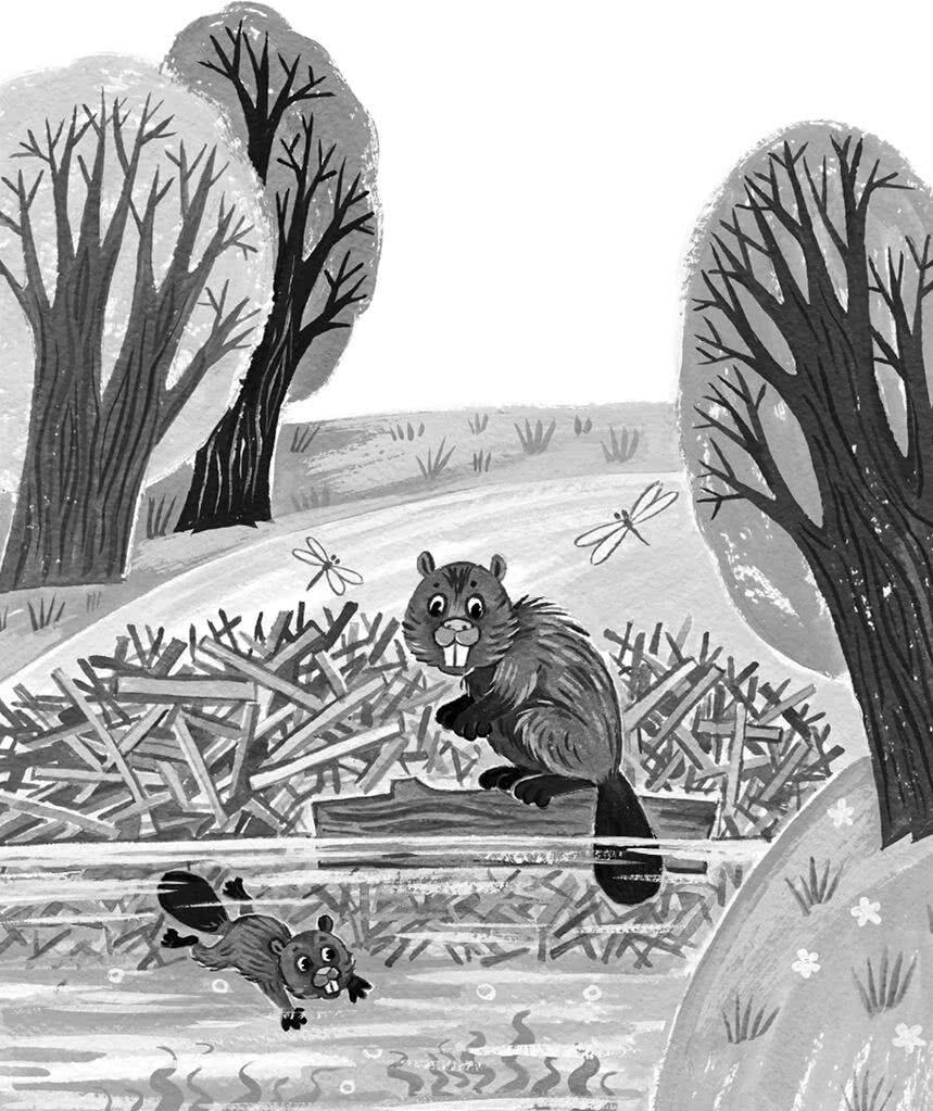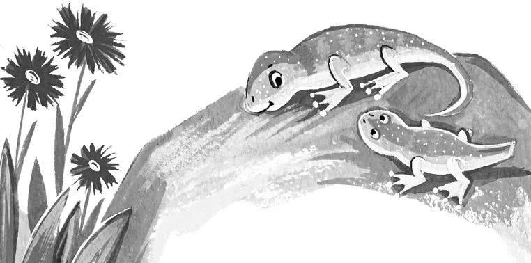 Ящерка побежала в лес. На опушке она увидела бельчонка.