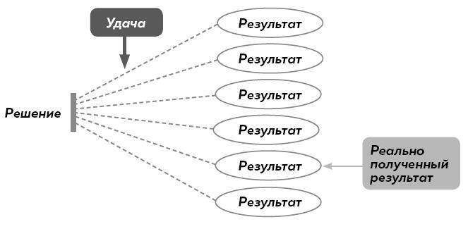 Для каждого решения есть множество вариантов развития событий: какие-то – лучше, какие-то – хуже. Когда вы делаете выбор, перед вами открываются несколько путей (даже если вы не знаете, куда они ведут) и становятся недоступны несколько других. Принятое вами решение определяет набор этих вариантов и их потенциальные исходы. Но оно не определяет, что конкретно случится.