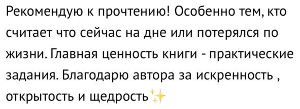 Пусть каждая читательница узнает в непридуманных историях себя. Разверни взгляд внутрь, пока читаешь эти строки. Наблюдай, как происходит трансформация. А когда закончишь книгу — пусть всё станет ясно. Кто ты, какой не являешься, что хочешь, а что нет и как с тобой нельзя! Только ты можешь узнать это, дорогая. Никто не сделает эту работу за тебя. Время пришло, если книга у тебя. Значит это самый подходящий момент. Воспользуйся им.
