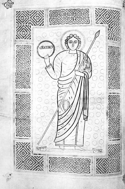 Давид Победитель. Миниатюра рукописи Толкования псалмов Кассиодора из библиотеки Даремского собора. VIII век