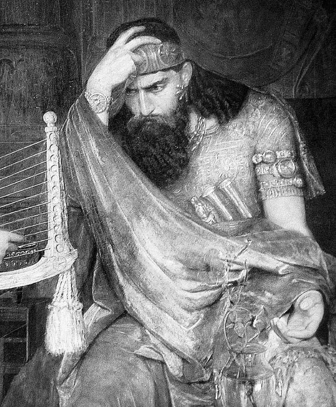 Саул, конечно же, искал объяснения своих тревог в отношениях с Богом. Он подумал, что Бог отступил от него, и впал в глубокую меланхолию. Тогда-то ему и порекомендовали мальчика-пастушка Давида как прекрасного, сладкоголосого певца псалмов, чье искусство в состоянии разогнать тоску. И юноша стал чем-то вроде пажа при Сауле. Не зная, что Давид отмечен Господом, царь находил утешение в его обществе.