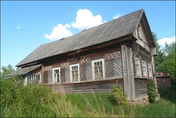 Далее, по правой стороне деревенской улицы, следующим за кирпичной лавкой, стоит заброшенный деревянный жилой дом под №12 с резьбой на каменном подклете, который старожилы называют Дуниным домом. Дом с мезонином и кирпичная лавка принадлежали крупному торговцу Василию Семёновичу Семёнову (1868–1926), а дом с резьбой под №12 — тоже торговцу Николаю Семёновичу Семёнову (1862–?), а потом его сыну Фёдору Николаевичу Николаеву (1883–?).