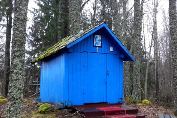 Голубоватый силуэт часовни святой Параскевы Пятницы виднелся среди деревьев метрах в ста справа от деревенской улицы. Летом из-за листвы с дороги часовню не увидишь. Она стоит на холме, поросшем соснами. Вокруг часовни сейчас находится небольшое деревенское кладбище, оно возникло на месте жальника после войны. Среди полутора десятка поздних захоронений лежат многочисленные камни-валуны, оставшиеся от обкладок вокруг жальничных погребений.
