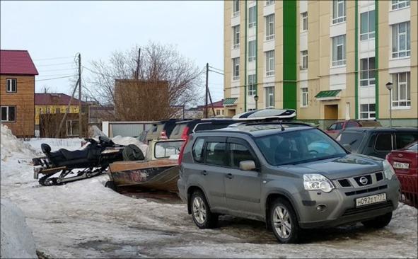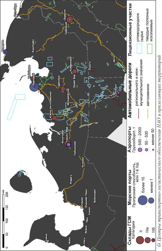 Транспорт — вообще больная тема для округа. НАО — один из немногих субъектов Российской Федерации, где не только полностью отсутствуют железные дороги, но и почти нет автодорог (по плотности автомобильных дорог с твердым покрытием — 1,5 км путей на 1000 км2 территории — НАО занимает предпоследнее место в России после Чукотского АО). У столицы округа города Нарьян-Мар (рис. 5) нет круглогодичной наземной транспортной связи с внешним миром (часть пути идет по зимникам; действует авиасообщение, а в летнее время — водный транспорт по реке Печора).