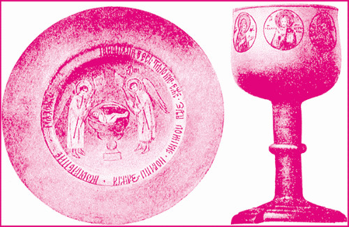 Деревянные дискос и чаша Святого Сергия, на которых совершал Таинства Преподобный в своем храме во имя Живоначальной Троицы.