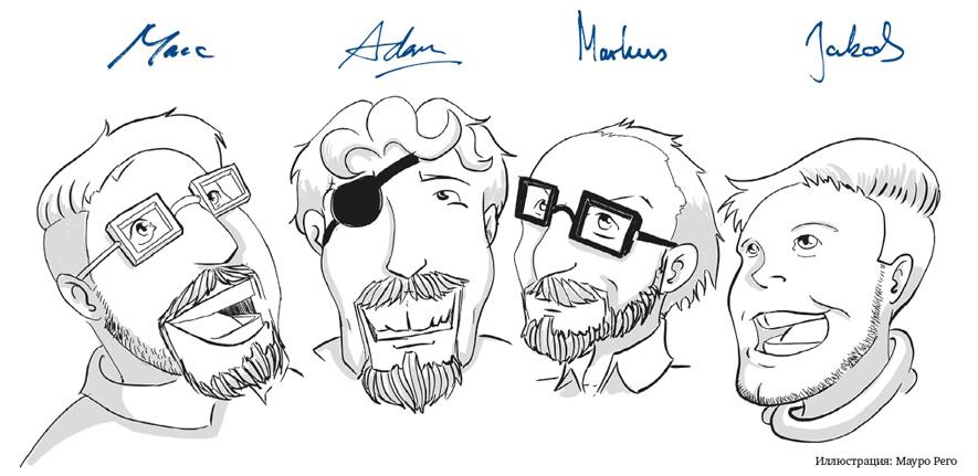 Мы (Марк и Якоб) редакторы книги «Вот это сервис-дизайн-мышление» и работаем в этой сфере с 2008 г.: создавая дизайн, консультируя, преподавая и выступая. Мы много лет работали вместе и в конце концов сумели создать два стартапа, посвященных сервис-дизайну: Smaply и ExperienceFellow. Мы с огромной радостью объединили усилия с двумя консультантами и тренерами в сфере сервис-дизайна — с Адамом Лоуренсом и Якобом Шнайдером из WorkPlayExperience. Они широко известны как инициаторы Global Service Jam [3] со знаменитым девизом «Не болтать, а делать».
