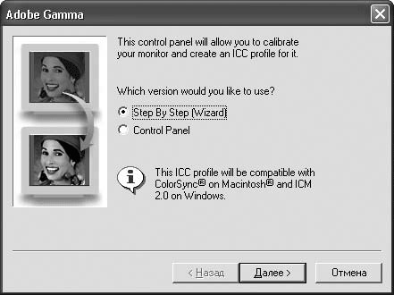 Рис. 2.1. Первое окно программы Adobe Gamma
