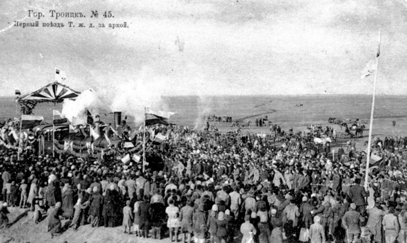 Зато Троицкая железная дорога открывалась со столичным размахом. Весь город собрался на станции. Фотографы, редакторы газет, почётные гости. Специально была выстроена триумфальная арка, сквозь которую прибыл первый поезд. Город праздновал это событие несколько дней. А строителей дороги местные купцы неустанно потчевали за свой счёт в самых дорогих ресторанах Троицка.