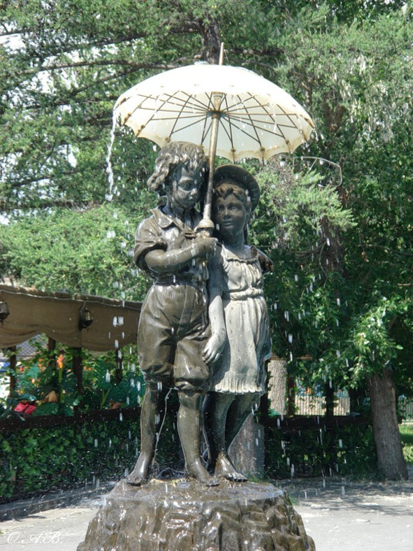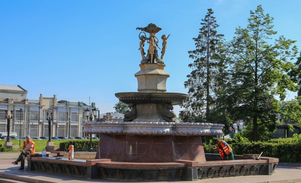 Ещё один подарок родному городу от Алексея Тишина — «Фонтан с грациями». Построен в 2004 году к оформлению Кировки. В Челябинске немало фонтанов. Но у этого есть один секрет! Когда его строили, то почему-то забыли подключить к водопроводу! Ну, вот так получилось!… Поэтому каждой весной, когда приходит пора включать фонтан, приезжает специальная пожарная машина и заполняет фонтан водой.
