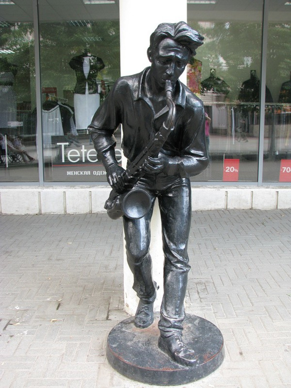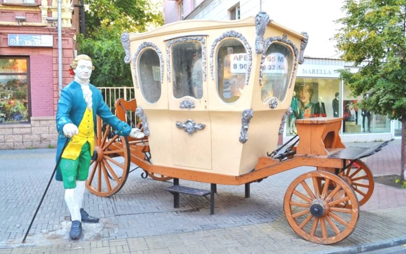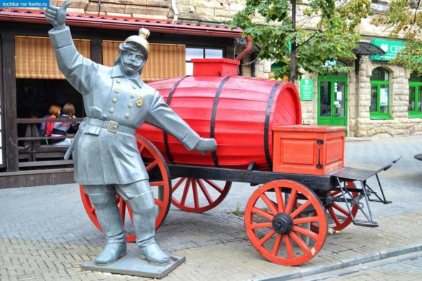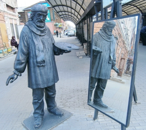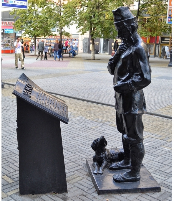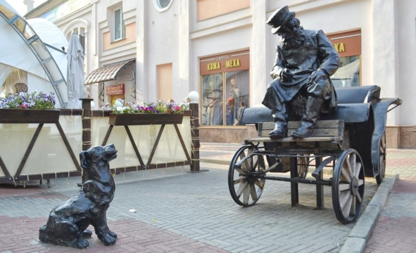 Но в этой скульптурной композиции ещё и спрятан сюрприз! Если заглянуть в объектив камеры, то можно увидеть, как выглядела улица Кирова в девятнадцатом веке! Как в машине времени. Посмотрите, непременно!