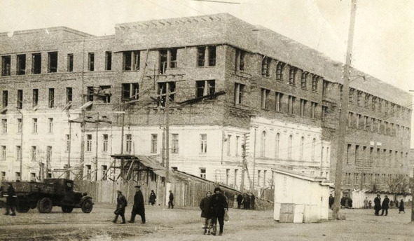 Только спустя четыре года после окончания войны, в 1949 году, оборудование завода демонтировали и вывезли. Но зданию театра был нанесён, казалось, непоправимый ущерб. Только представьте! Перекрытия между вторым и первым этажом были частично разрушены, а площадка, где размещалась сцена и оркестровая яма — сплошь залита толстым слоем бетона.