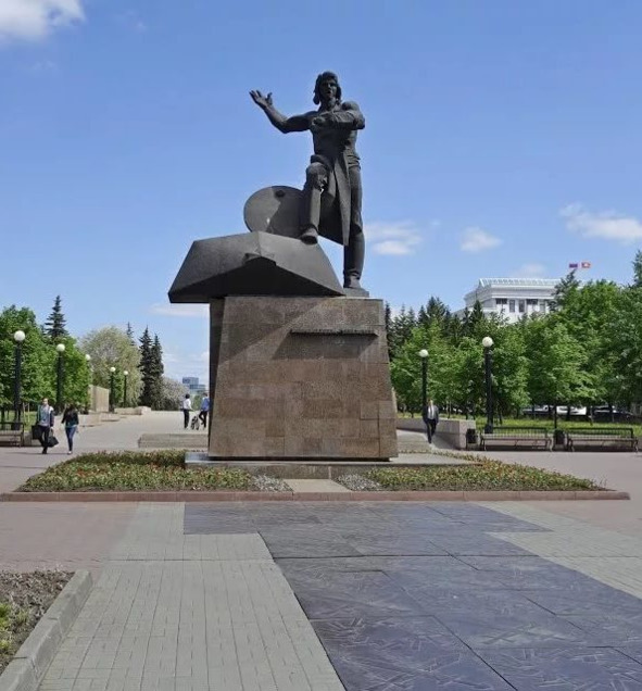 А сколько было шуму при установке этой стелы, вы и представить не можете! Члены башкирской общины разглядели в фигуре петербургского офицера намёк на то, что это сам Алексей Тевкелев!!! Ведь и надпись-то под этой фигурой не что иное, как цитата из его доклада императрице о том, что он здесь в 1736 году крепость заложил.