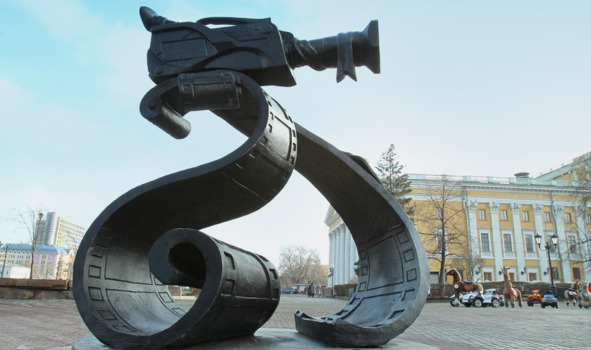 Следующая интересная скульптура, не проходите мимо, которая называется «Будь в кадре». Установлена относительно недавно, в 2013 году по заказу медиа-холдинга ОТВ, когда тот праздновал свой десятилетний юбилей. Видеокамера в наши дни — это своеобразный хронограф истории.