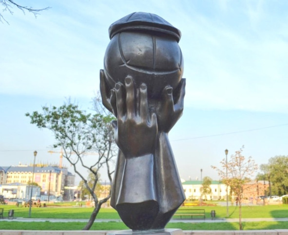 И ещё Вячеслав Михайлович был известен своей крепкой дружбой с тогдашним мэром Москвы Юрием Лужковым, который запомнился всем своей легендарной кожаной кепкой. Так вот на торжественное открытие Кировки в гости в Челябинск приехал Лужков. И к его визиту на Кировке неожиданно появилась вот эта скульптура: улыбающийся широко баскетбольный мяч в кожаной кепке. И руки, поддерживающие его, как символ дружбы. Кстати и Тарасов и Лужков обладали здоровым чувством юмора, и позитивно отнеслись к такой шутке челябинцев!