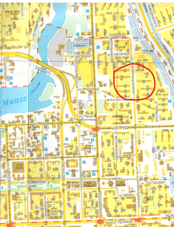На современной карте Челябинска эта локация находилась в районе перекрестка улиц Миасской и III Интернационала.