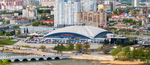 Уникальность его в том, что эта железобетонная конструкция на самом деле очень внушительных размеров (102 на 102 метра) не имеет внутри колонн, поддерживающих эту «оболочку»! Вся конструкция держится только на четырёх угловых опорах. А они, в свою очередь, размещены на специальных катках, которые могут двигаться. Таким образом, мощный купол Челябинского торгового центра — это «дышащая» конструкция! А «дышит» она от перепада температур. Ведь в Челябинске температура зимой достигает — 40°, а летом +40°.