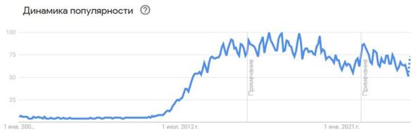 Можно видеть, что начиная примерно с 2012 года резко увеличился интерес к этой теме. Затем в течение нескольких лет мы вышли на «установившийся режим», на стабильный уровень интереса. И в последнее время интерес немного уменьшился в связи с тем, что публика уже насытилась первоначальной информацией по данному предмету. Картина очень напоминает «цикл хайпа» по Гартнеру. Сначала этого просто нет, затем оно появляется и мы видим первый всплеск, затем падение интереса, затем второй неторопливый рост и участок «плато». Но и это пройдёт, как написано в мудрых книгах.