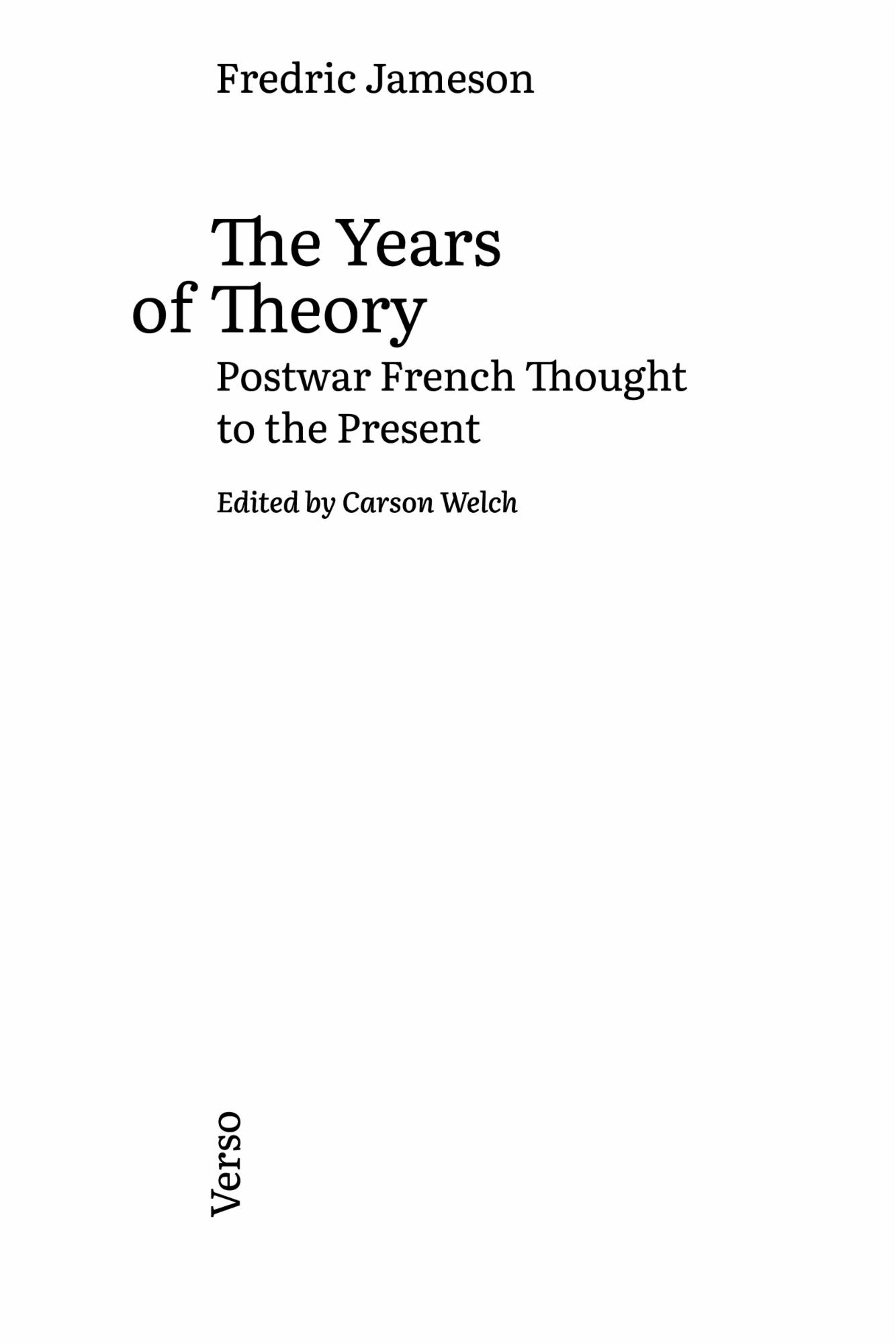 Расшифровка выступлений Джеймисона, составляющая эту книгу, позволяет принять участие в его семинаре — не только воскресить эпоху французской теории с энтузиазмом тех, кто сам ее не переживал, но и стать свидетелем уникального исторического мышления в действии. Читатель может причислить себя к тем многочисленным студентам, которые извлекли и продолжают извлекать пользу из щедрости, отличающей как мышление, так и преподавание Джеймисона. Именно из желания сохранить дух этой педагогической практики в приведенной ниже стенограмме в значительной степени сохранена импровизированная речь Джеймисона (думаю, он не станет возражать, если я скажу, что его разговорный стиль с облегчением встретят даже поклонники его письменных работ). Расшифровка и редактура этой речи, безусловно, позволили понять, что́ теряется в процессе, поэтому в заключение кажется необходимым отметить, что даже более или менее точной записи лекций можно достичь лишь ценой сведения их бесчисленных достоинств к единому, завершенному тексту.
