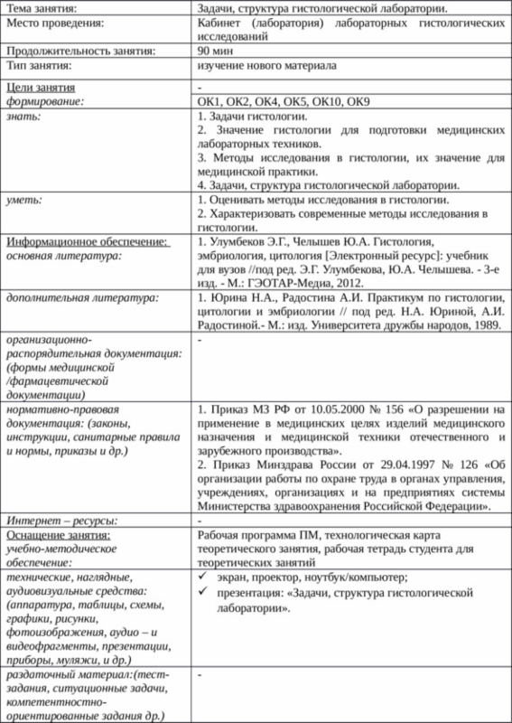 - Теоретическое занятие 1. Задачи, структура гистологической лаборатории