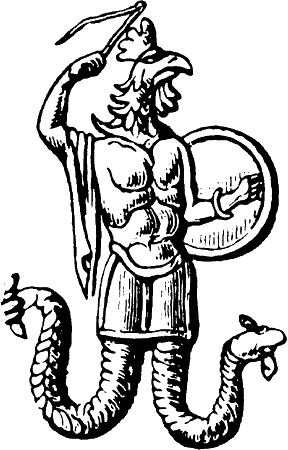 Обитающий в Ливии «царь безграничных пустынь… и без яда губящий» (по выражению Лукана). Само слово «василиск» происходит от греческого «basileus» («царь, базилевс») и означает «маленький царь». Это самый грозный и смертоносный изо всех змеев. Василиск, голову которого венчает гребень в форме диадемы, вылупляется из яйца, снесенного петухом (или жабой) и высиженного змеей (правда, Лукан относит его, наряду с аспидом, амфисбеной и прочими гадами к отпрыскам горгоны Медузы). Несмотря на змеиную наружность, передвигается он, не стелясь по земле, а как бы поочередно выметывая вперед сложенное кольцами тело. Первым наружность василиска описал Плиний Старший в своей «Естественной истории». По словам Плиния, василиск — змей с белой складкой наподобие звезды на лбу; эта складка поднимается над мордой животного словно корона. Впрочем, облик василиска в Средние века изменился: стали считать, что у бестии голова петуха, туловище жабы, птичьи крылья и хвост змеи или дракона, с ядовитым жалом на конце. (Любопытно, что английское слово «cockatrice» — «василиск» — происходит от латинского «cocatrix», что переводится как «ихневмон». Должно быть, некогда считалось, что василиски похожи на ихневмонов.) Василиск убивает прикосновением, превращает в камень взглядом, а его дыхания не выдерживают даже птицы, пролетающие высоко в небе. Совладать с василиском в битве может только зверек ласка, для человека же самый действенный способ — выставить перед собой щит или зеркало: увидев собственное отражение, василиск тут же умрет. Кроме того, известно, что василиск никогда не появляется поблизости от тех мест, где растет рута, а крик петуха заставляет его исчезнуть (как гласит русская поговорка: «Петух поет — значит, нечистой силе темное время прошло»). В Книге пророка Иеремии именно василиски олицетворяют зло: «Ибо вот, Я пошлю на вас змеев, василисков, против которых нет заговариванья, и они будут уязвлять вас, говорит Господь». По английской легенде, страна когда-то буквально кишела василисками, от которых не было спасения, пока некий рыцарь не обвешался с головы до ног зеркалами и не отправился в поход: василиски, пытавшиеся на него напасть, валились замертво, увидев в зеркалах собственное отражение (следует отметить, что эта легенда — греческого происхождения, она приводится в «Александрии» Псевдо-Каллисфена; впервые подобный способ борьбы с василисками использовал, как считается, Александр Македонский).