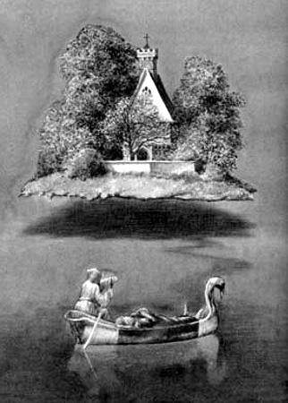 Авалон — символ загробного мира; плавание на остров и возвращение оттуда есть символическое умирание, обряд инициации сродни шаманическому обряду Одина. Кроме того, Авалон выступает как вариант Атлантиды.