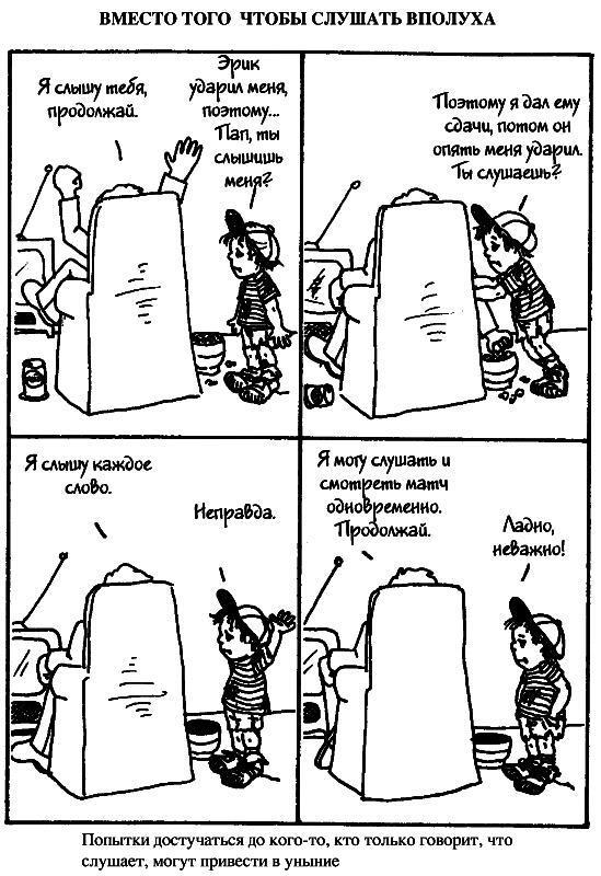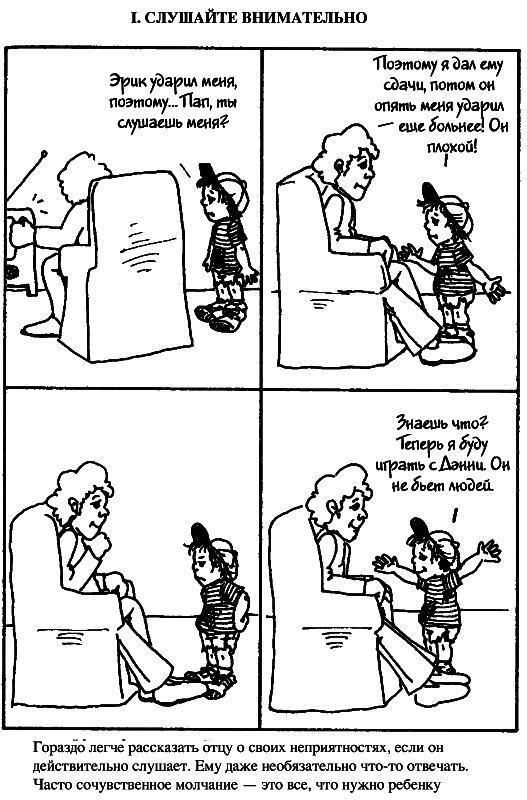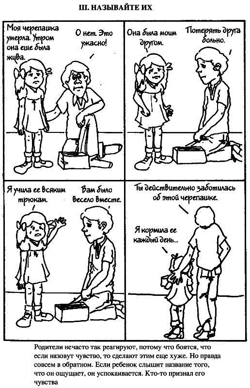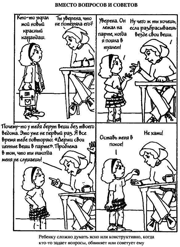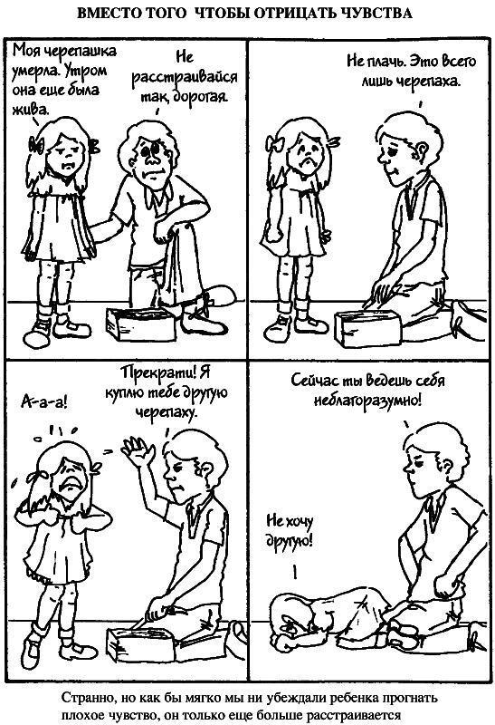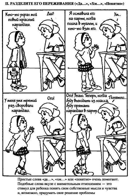 Далее, на рисунках, вы увидите контраст между этими приемами и тем, как обычно люди отвечают детям, если у них проблемы.