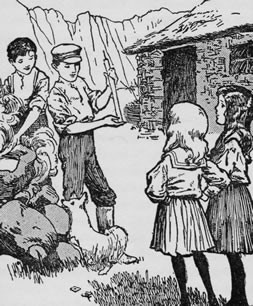 All went to bed early that night, and were up very early in the morning. In fact, breakfast was finished before the stars had begun to pale in the west. Then came twilight itself, and, long though it was, its intense beauty was the best reward for the waiting, watching little Crusoes.