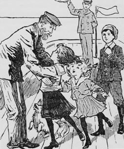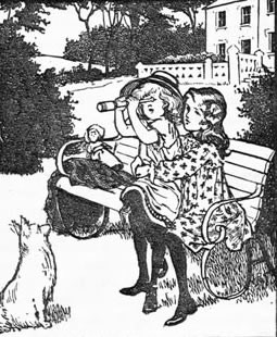 Pansy sat on her sister's knee and peeped through the glass. Then both the children started up and waved their arms in the air at the far-off ship. They were just about to rush off to tell Mother, when their cousin Frank came up. He was a lad of about thirteen or fourteen, but he was so tall and manly that he looked older.