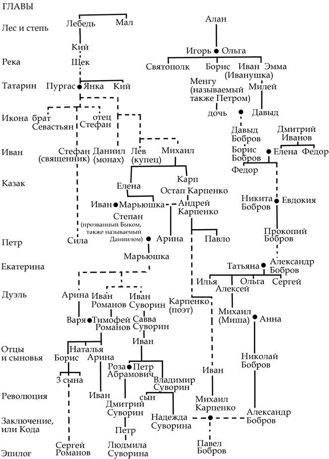 «Русское» — исторический роман. Семейства Бобровых, Сувориных, Романовых, Ивановых, Карпенко, Поповых и персонаж по фамилии Пинегин вымышлены. Однако, прослеживая их судьбы на протяжении столетий, я помещал их в историческое окружение, среди лиц, которые существовали или, по крайней мере, могли существовать, и событий, которые происходили или, по крайней мере, могли происходить на самом деле.