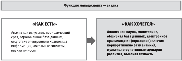 Обострение конкурентных войн и глобальные изменения рынка требуют скорейшего достижения «технологичности» анализа, т. е. перевода его на научные рельсы, создания мониторинга как системы постоянного отслеживания ранних и поздних индикаторов деятельности персонала, создания обширной базы данных и грамотно структурированного электронного хранилища информации (включая корпоративную базу знаний). Управленческие решения должны основываться на анализе глубинных (большей частью скрытых) закономерностей, генерироваться на основе имитационного математического моделирования и представляться в виде мультиальтернативных сценариев, должны обеспечивать высокую точность оптимизации и прогноза. Естественно, что такой высокий уровень анализа нуждается в правильной постановке управленческой задачи (на основе новой – системной – управленческой методологии) и инструментов нового поколения.