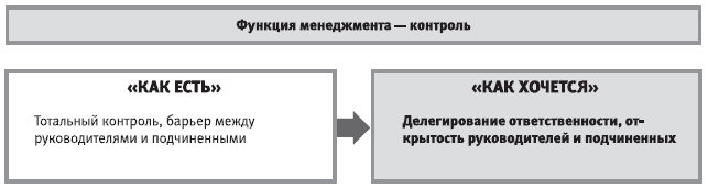 Необходимость повышения производительности и качества труда при одновременном снижении издержек диктует смену формы и вида управленческого контроля. Руководитель просто не имеет права тратить время на постоянный контроль исполнения – это должно стать прерогативой самого исполнителя. Задача руководителя заключается большей частью в том, чтобы обеспечить все необходимые условия – от организационного дизайна до обучающих и мотивирующих действий. При этом нужно достичь такой степени коммуникационной и психологической открытости в отношениях с подчиненными, чтобы возникла и закрепилась максимально интенсивная и «чувствительная» обратная связь. Успех управления качеством в значительной степени связан с такими изменениями. Управленческое видение контроля – поощрение автономии.