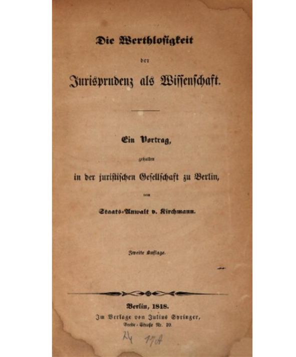 Юлиус фон Кирхманн. О бесполезности юриспруденции как науки