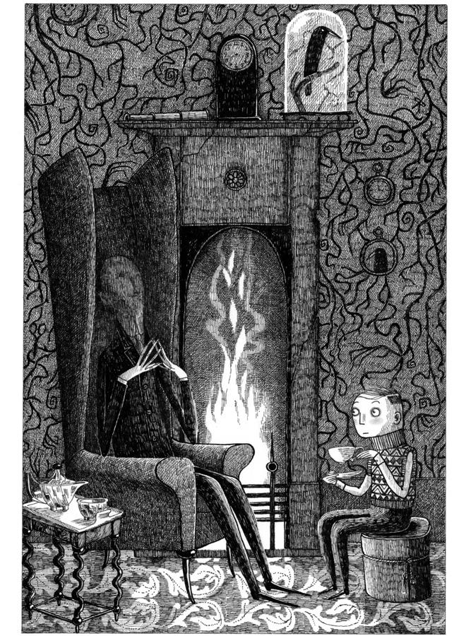 Дверная ручка со скрежетом повернулась, и дверь открылась. Того, кто за ней стоял, мне видно не было. Я видел только дядюшку: он шепотом сообщил стоявшему за дверью о том, что мы хотим выпить чая с кексом, после чего дверь медленно затворилась, и теперь звук шагов удалялся, причудливо мешаясь с собственным эхом, словно кто-то семенил, приволакивая ногу.
