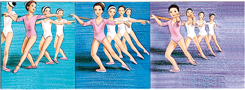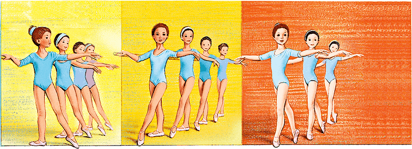 – Ещё раз, девочки! Смотрите в зеркало и не сбивайтесь с такта! Дружно, вместе! Маруся, Лара, молодцы! Надо довести до блеска это упражнение.