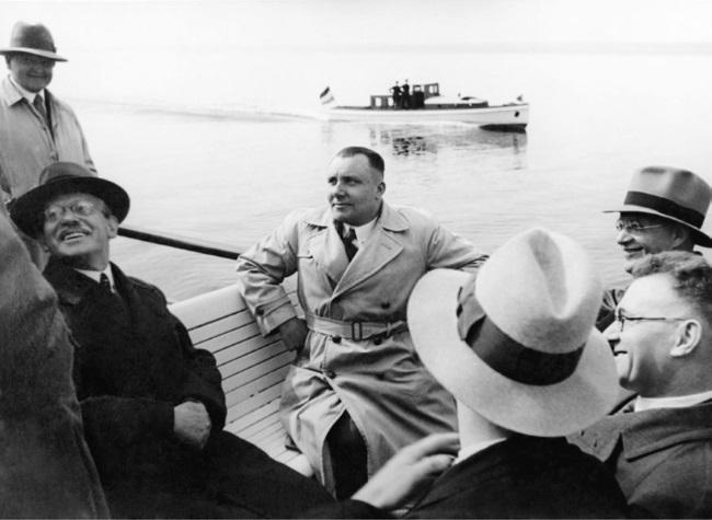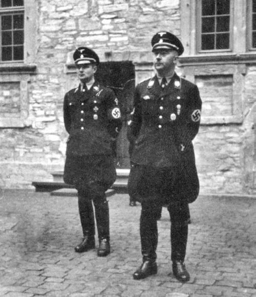 Генрих Гиммлер (справа), один из главных политических и военных деятелей нацистской Германии, на очередном собрании в замке Вевельсбур