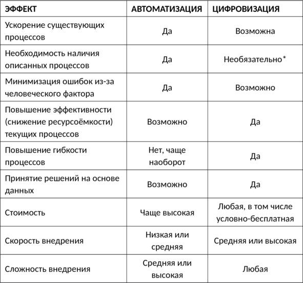 А могут они и не пересекаться совсем. Также приведу сравнительную таблицу с разницей между автоматизацией и цифровизацией.