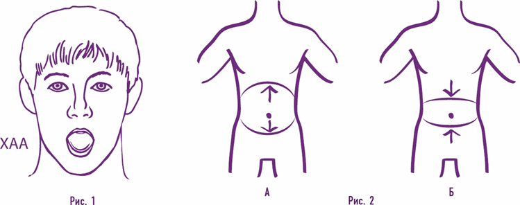 А. Стадия вдоха: при вдохе повышается внутригрудное и внутрибрюшное давление; за счет диафрагмы происходит массаж органов средостения (легкие, бронхи); за счет урогенитальной и тазовой диафрагмы происходит массаж органов тазового дна (простаты у мужчин, матки у женщин).