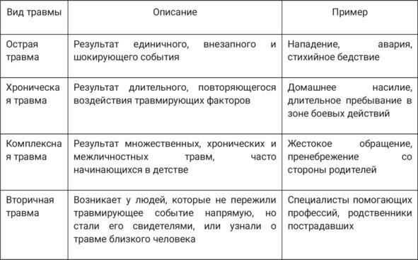 Виды психологических травм