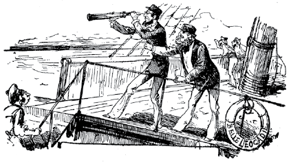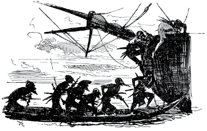 Старший помощник Мандибюль, с гарпуном в руке, громкими возгласами побуждал матросов усерднее налегать на весла. Две минуты спустя Фарандуль, подобранный в лодку, схватил гарпун и уверенной рукой поразил им монстра в правый бок.