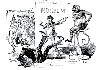 Спустя минуту-другую он хлопнул себя ладонью по лбу — с таким видом, будто только что мысленно произнес триумфальное: «Эврика!», — подозвал к себе одного из братьев Фарандуля, поставил его и Сатюрнена рядом друг с другом, спиной к собранию, и указал на то, что зад маленькой обезьянки располагает восхитительным хвостовым придатком, сверкающим плюмажем, столь необходимым для воздушной гимнастики, пятой рукой, которой дивная природа щедро наделила этот вид, тогда как бедняга Фарандуль мог предъявить лишь самую малюсенькую ее видимость.