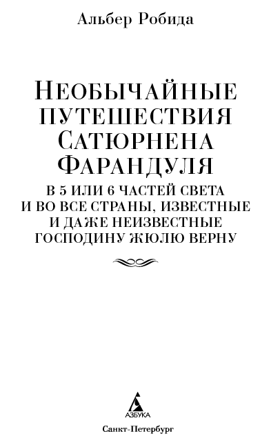 Необычайные путешествия Сатюрнена Фарандуля в 5 или 6 частей света и во все страны, известные и даже неизвестные господину Жюлю Верну : роман / Альбер Робида ; пер. с фр. Л. Самуйлова. — СПб. : Азбука, Азбука-Аттикус, 2025. — (Мир приключений. Большие книги).