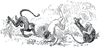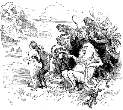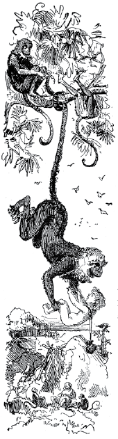Такая робость у мальчугана полутора лет от роду чрезвычайно беспокоила славных обезьян. Тщетно братья пытались показать ему пример, совершая самые отважные восхождения и делая самые воздушные кульбиты, — Фарандуль подобной гимнастикой не интересовался.