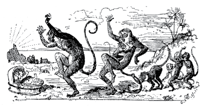 В хворостяной хижине, покрытой срезанными листьями бананового дерева, славная обезьяна наблюдала за тем, как ее младенец задорно предается пиршеству, предложенному его устам благодетельной природой.