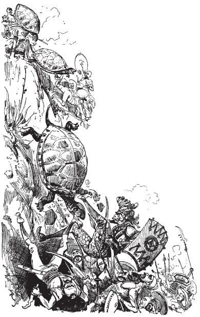 Фарандуль спрыгнул на монстра и принялся колотить топором по его панцирю, в надежде пробить проход, через который он мог бы проникнуть внутрь и спасти Мизору.