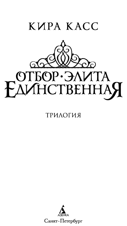 Отбор ; Элита ; Единственная : трилогия / Кира Касс ; пер. с англ. И. Тетериной. — СПб. : Азбука, Азбука-Аттикус, 2022.
